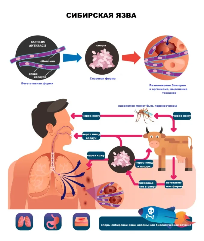 Фактик ҳолат: Қисман нотўғри. Bacillus anthracis споралари ташқи муҳитга ўта чидамли. Оддий қайнатиш спораларни ҳар доим ҳам йўқ қила олмайди. Фақат юқори босим ва ҳарорат остида узоқ вақт ишлов берилган (тўлиқ пишган) гўшт хавфсиз ҳисобланади.